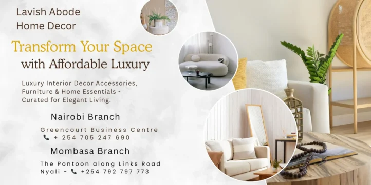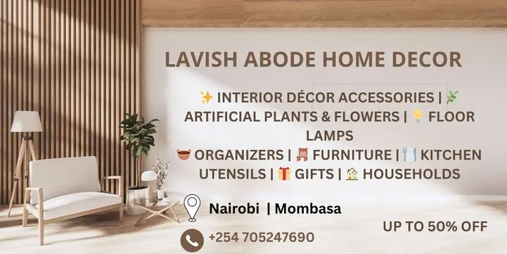 lavish01 (1)lavish02lavish03 Artificial Plants & Flowers Furniture Decorative Accessories Vases & Planters Lighting Decor Wall Decor Bedding Kitchenware Dining Table Accessories Throw Pillows Carpets & Floor Decor Curtains & Window Decor Seasonal & Festive Decor Storage & Organizers Home Appliances Car Accessories Featured Products Our most Loved Collections Add to cart Flower vase 6 pieces LED solar flame lamp KSh4,500.00 Add to cart Storage & Organization Acrylic and wood teabag organizer KSh2,500.00 Add to cart Storage & Organization Acrylic colander KSh1,200.00 Sale! Add to cart Throw Blankets Artificial Cherry Blossom Flowers White Pink KSh450.00 Original price was: KSh450.00.KSh449.00Current price is: KSh449.00. Add to cart Storage & Organization Honey dispenser KSh650.00 Read more Comforters & Duvets Luxury Gold Marble texture Foil style Duvet cover Set Read more Artificial Plants and Flowers Tall Monstera artificial plant- 140cm Add to cart Artificial Plants and Flowers XL pampa grass KSh700.00 How to shop Find item & add to cart Done? Proceed to checkout Enter Delivery Details The order is on it's way
