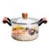 2.5 L Heavy borosilicate Glass cookware High Boron Wooden handle