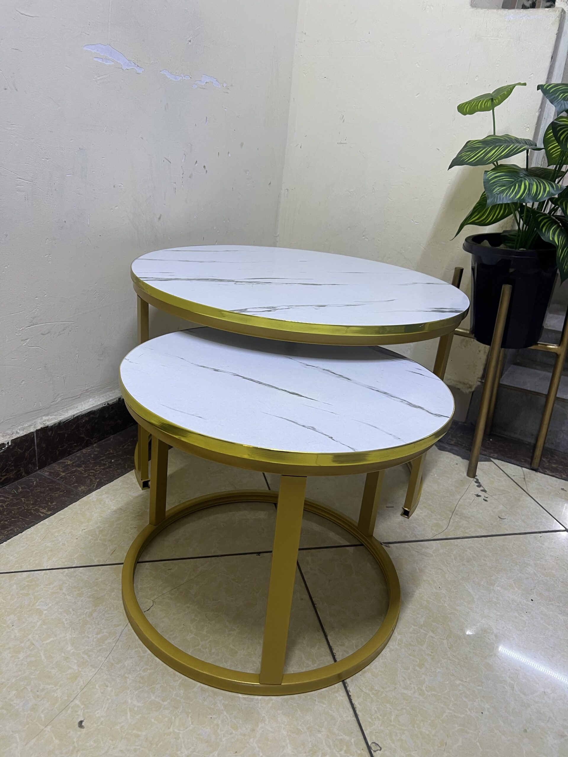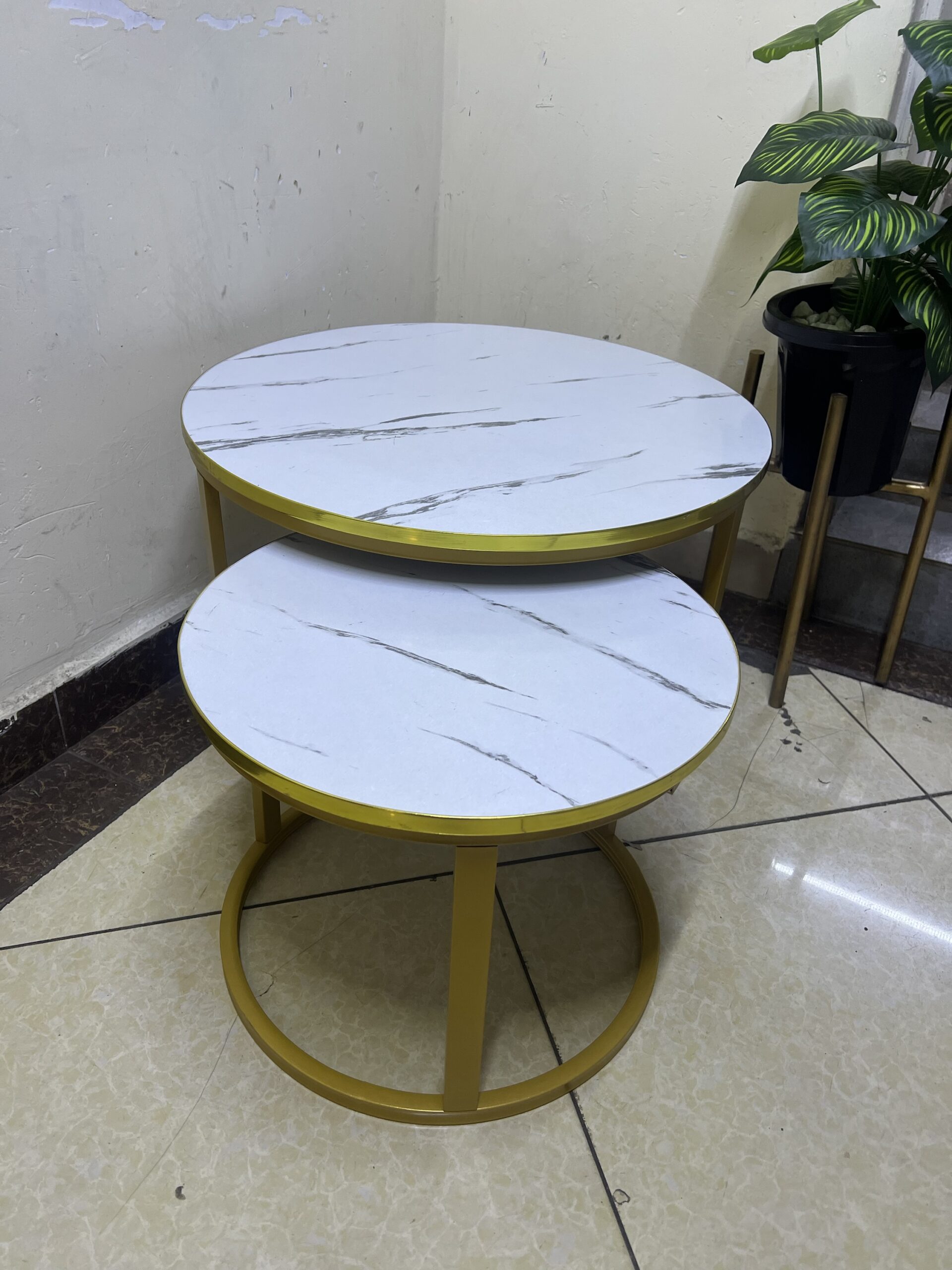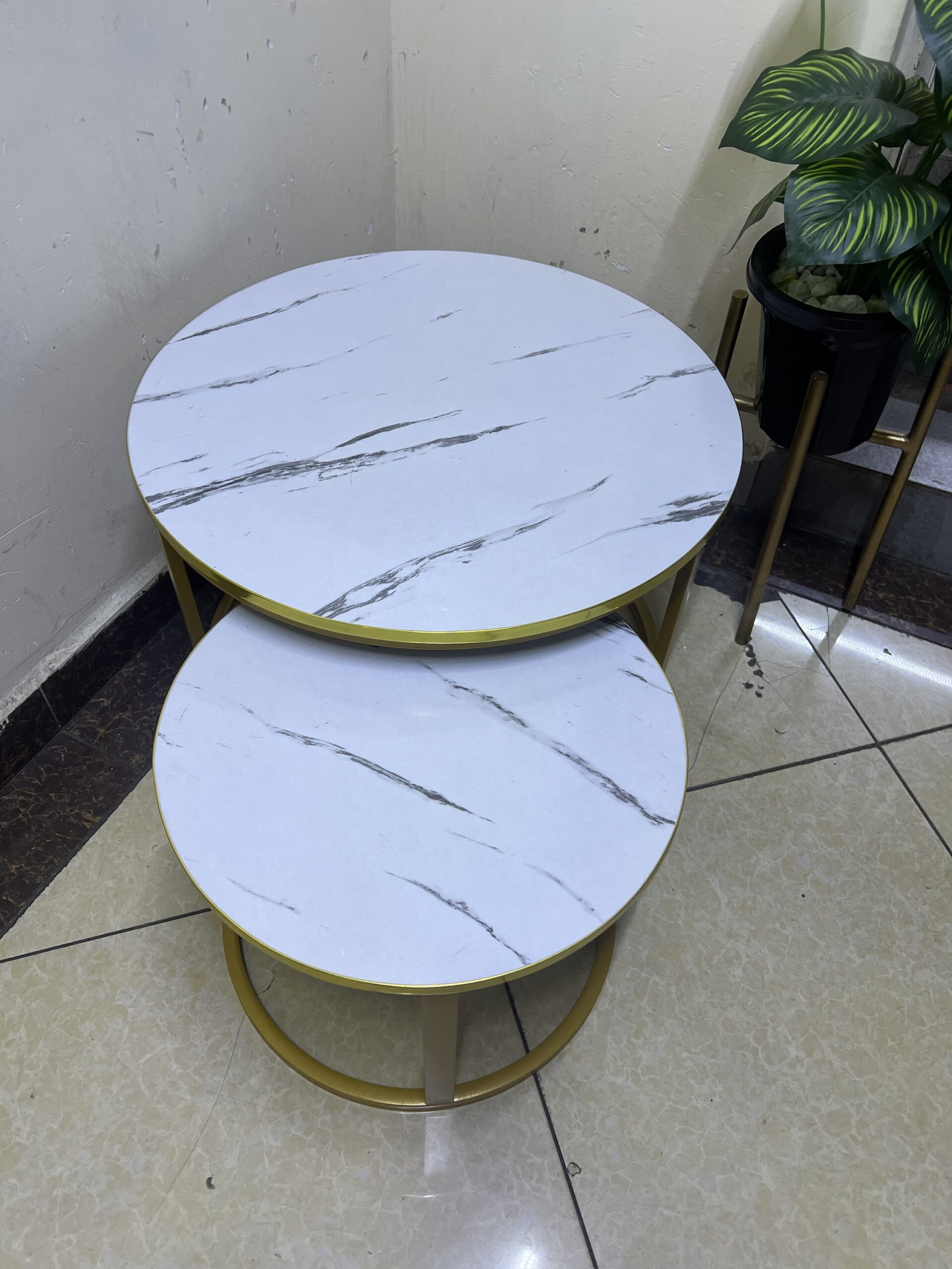 2 in 1 Nesting Table Wooden Marble Effect Top Gold Stand Coffee Table quantity