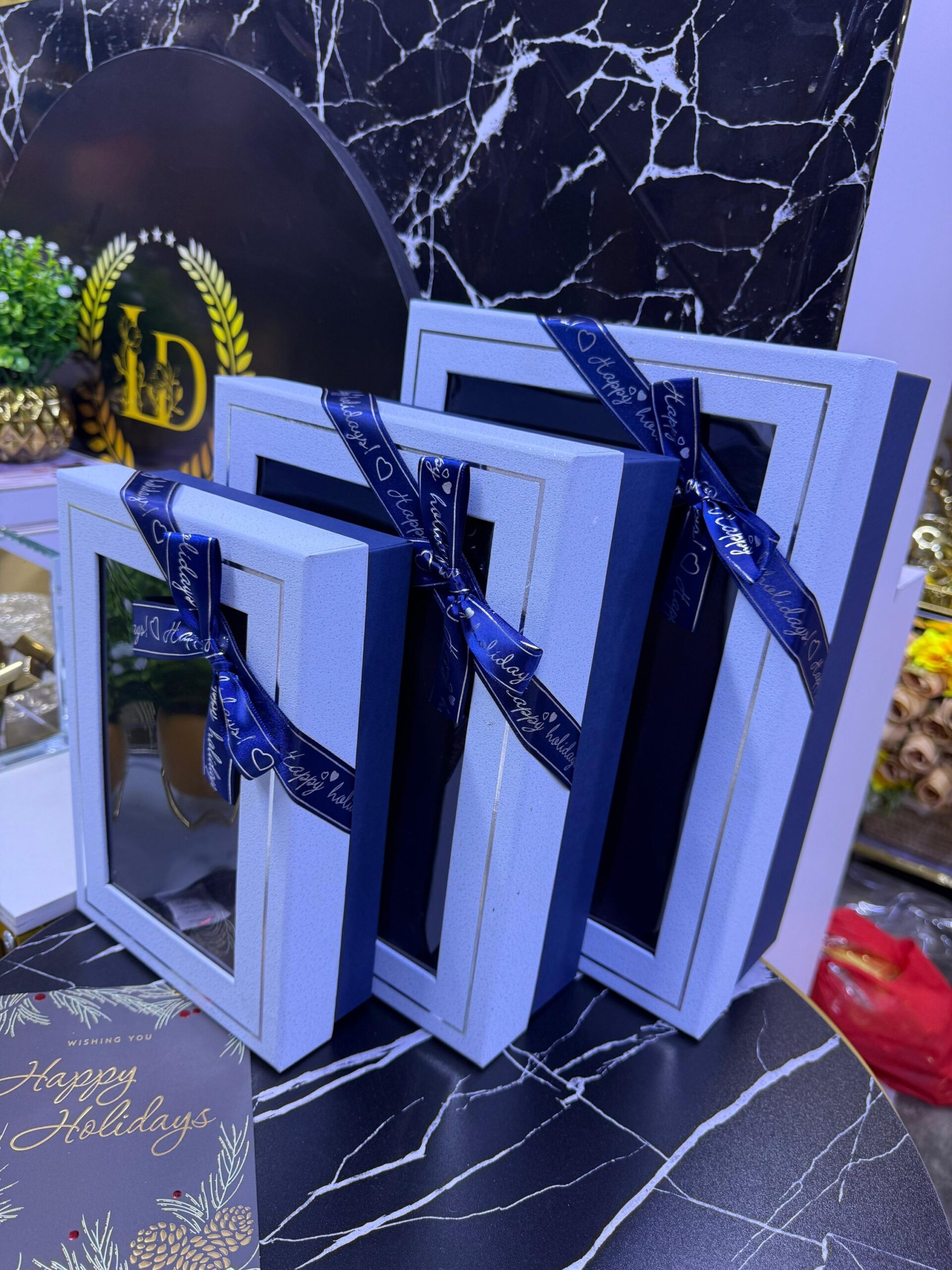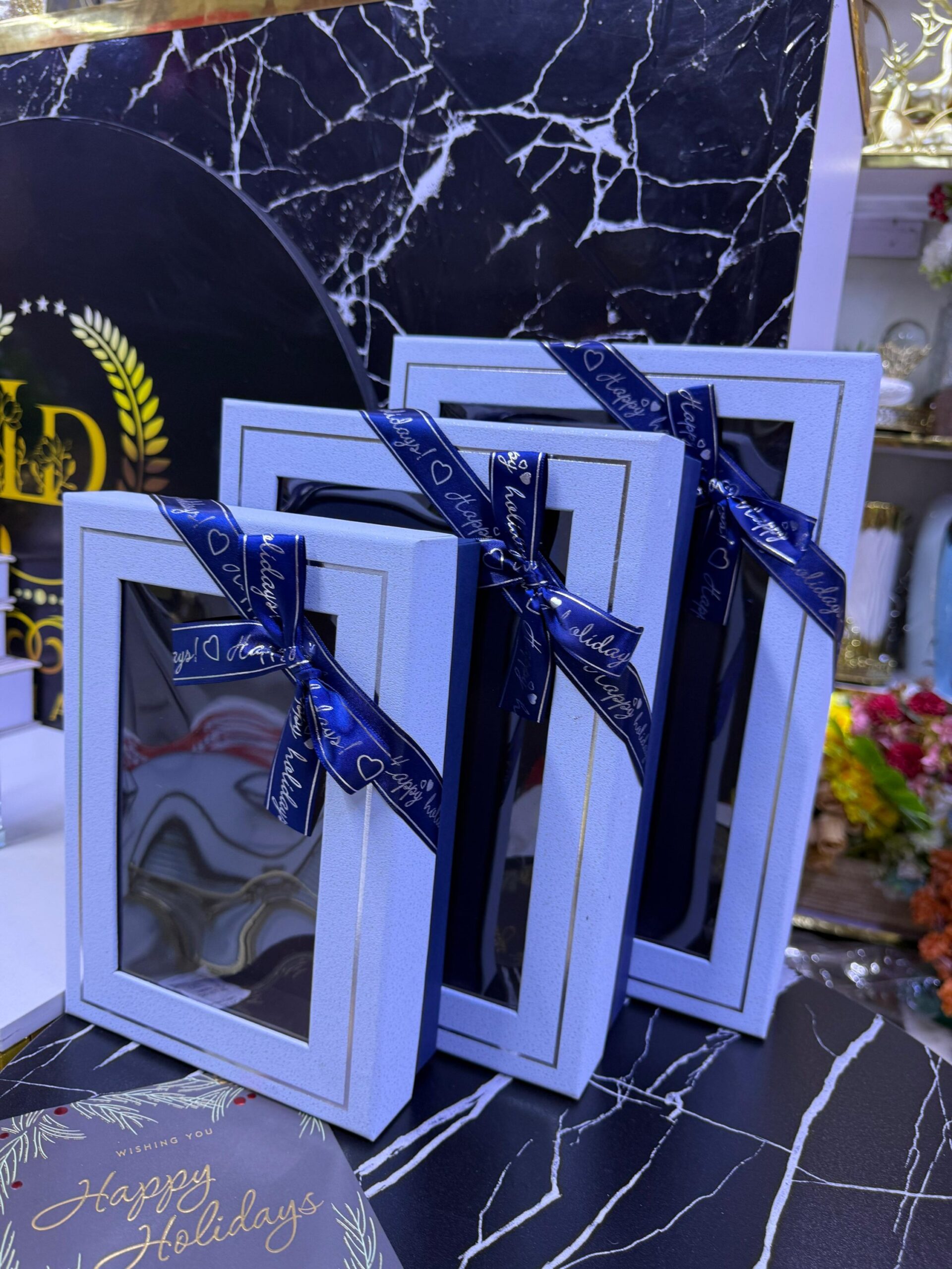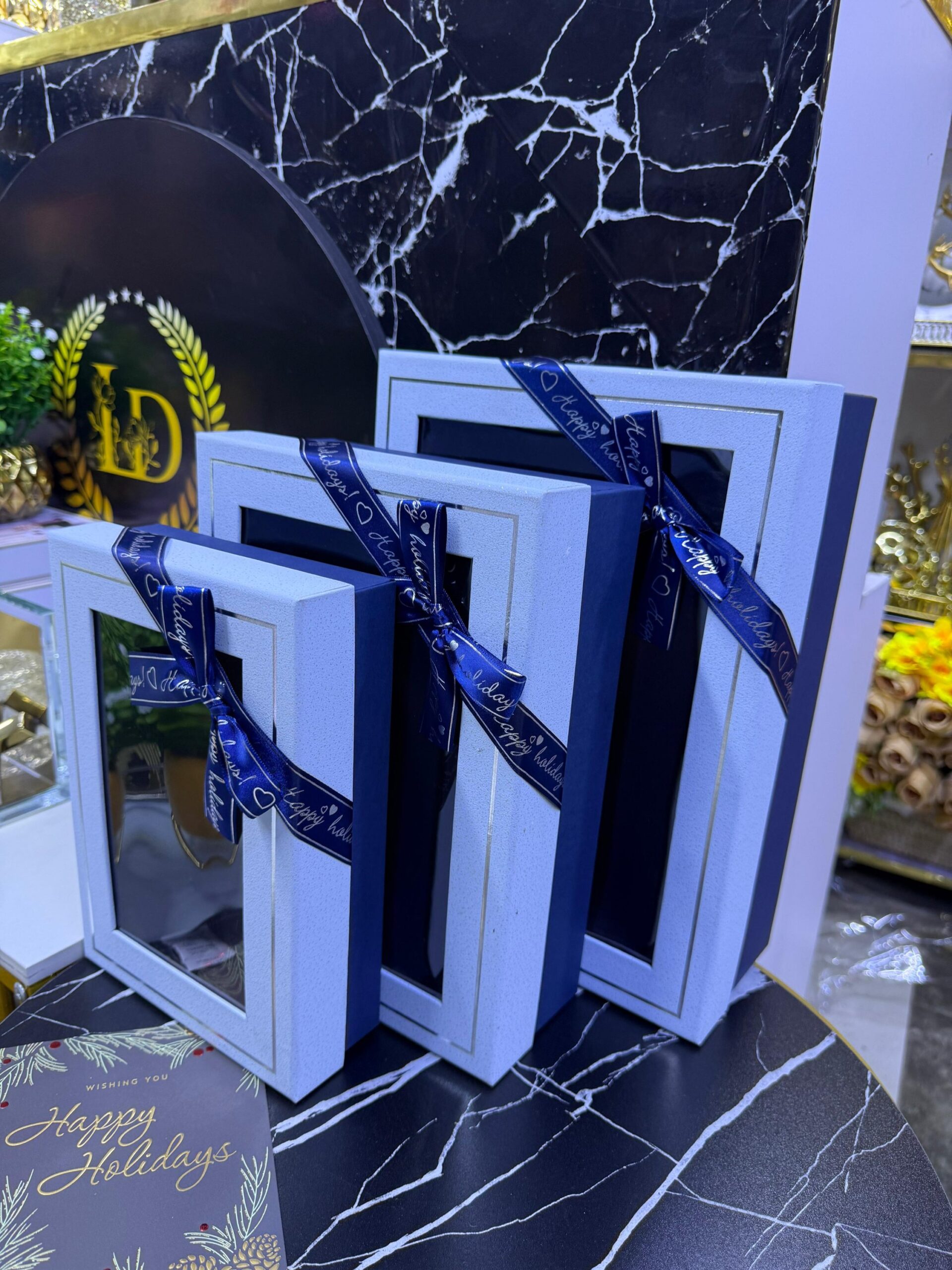 3 pc Gift Box Rectangular with Window Navy Blue Color Premium Quality Paper Perfect Packaging for Gifts Jewelry Christmas Birthdays Weddings Holidays Eco-Friendly Reusable Box