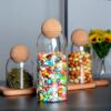 3 piece Open Ball Cork Transparent Jars with Bamboo Lids