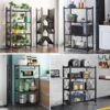 3 Tier Black Folding Shelf Storage Shelves Heavy Duty Foldable Metal Shelving Units Racks with Wheels No Assembly Required Great for Kitchen and Garage Shelf
