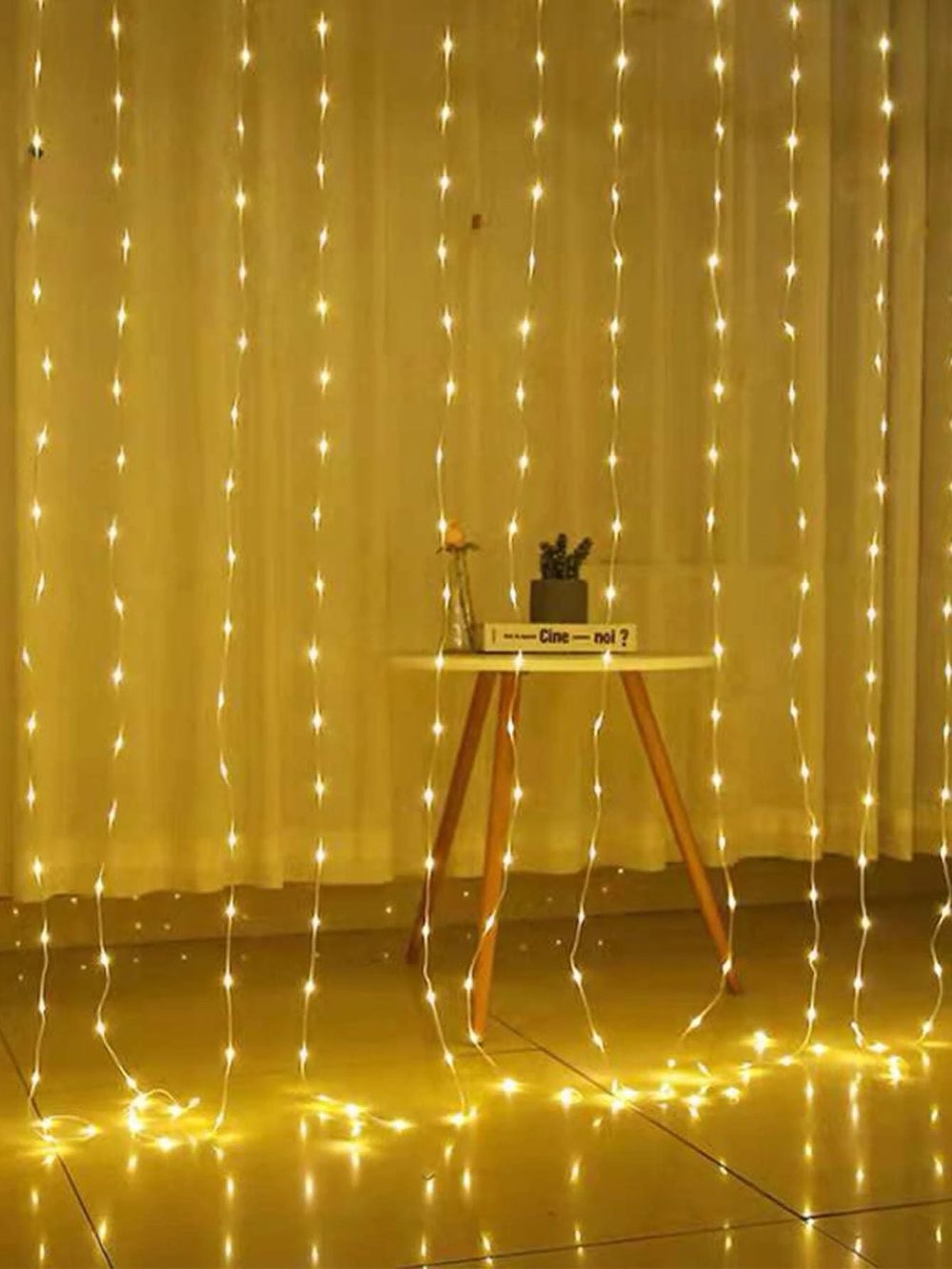 3M by 3M Curtain Lights with Remote Control and Hanging Hooks for Bedroom, LED Hanging String Light Outdoor, Fairy Curtain Lights Indoor for Christmas, Dorm, Wall, Backdrop, Window, Wedding, Party, Birthday Decor, Warm White