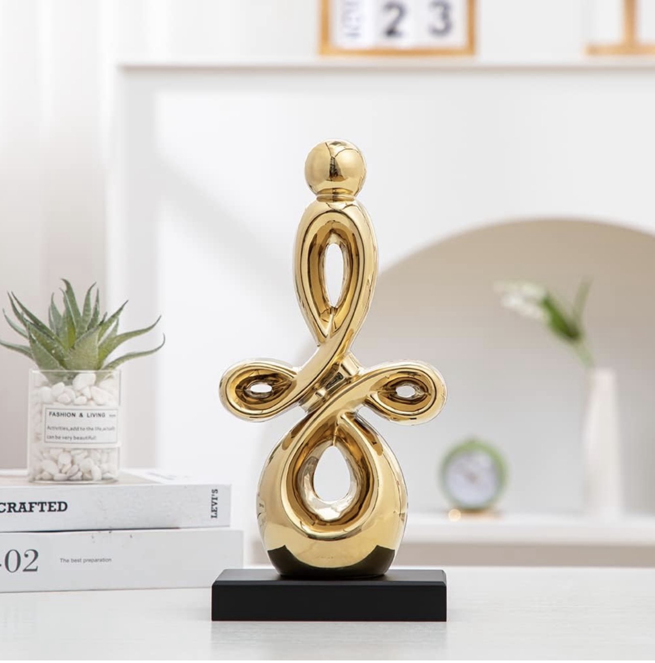 Ceramic Modern Art Statue, Golden Tabletop Decoration for Home, Living Room, Office