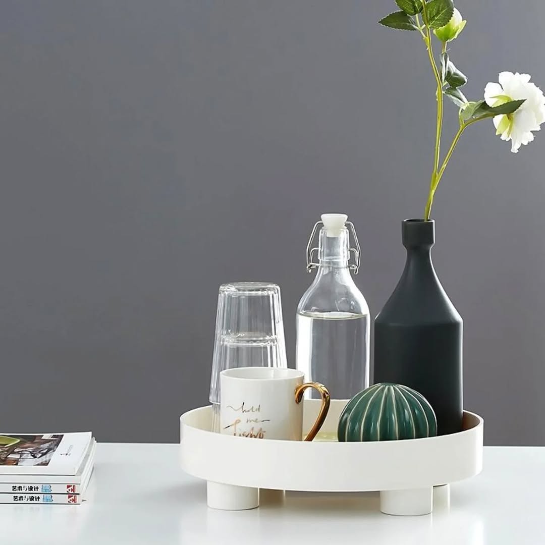 Chic Round Tray White 23cm Decorative Organizer Tray