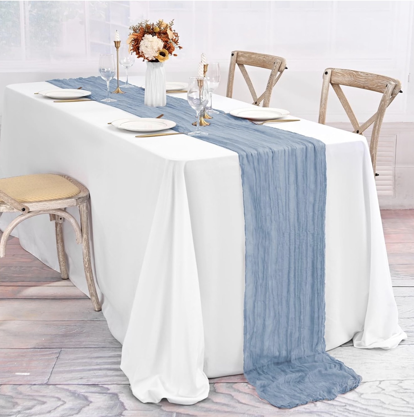 Dusty Blue Table Runners 10Ft Cheesecloth Table Runner Boho Gauze Table Runner Romantic Long Sheer Fabric Cheese Cloth Table Runners quantity