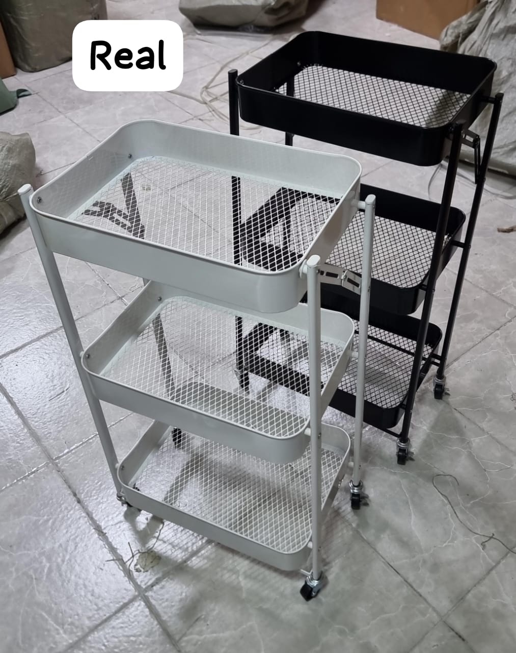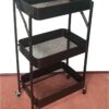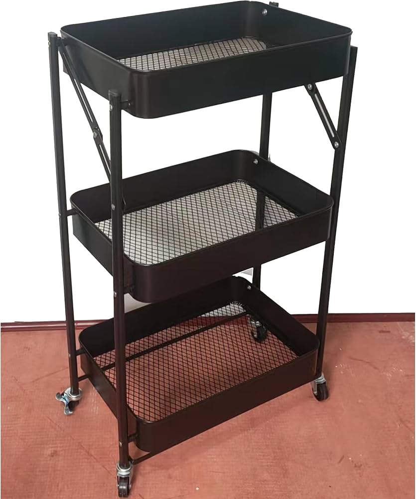 Foldable 3 Layer Rolling Cart Kitchen Cart Metal Utility Cart Nursery Storage Rack on Wheels Book Cart Snack Cart Craft Cart Bathroom Cart Art Cart Trolley Organizer Serving Cart Food Cart (Black)