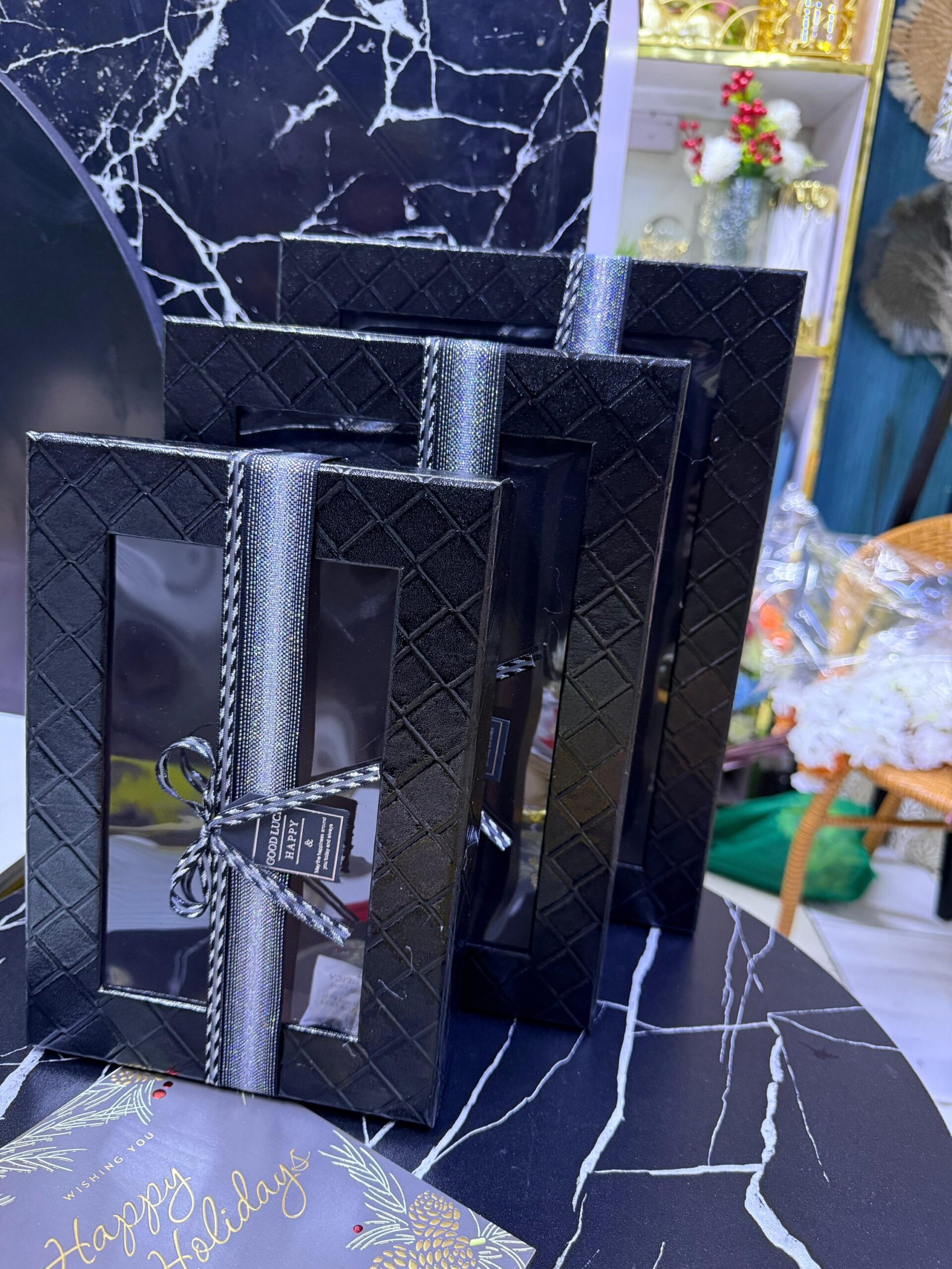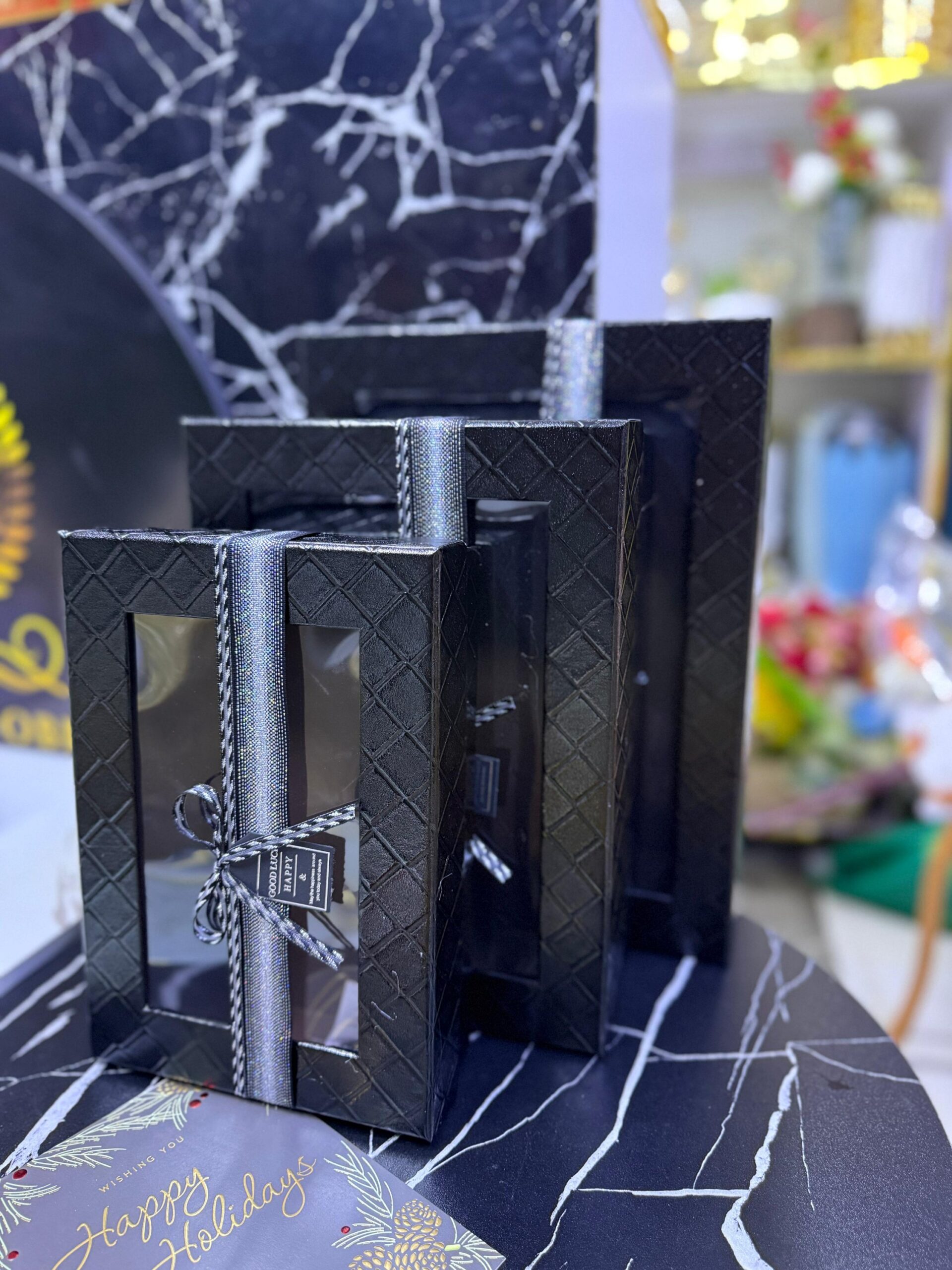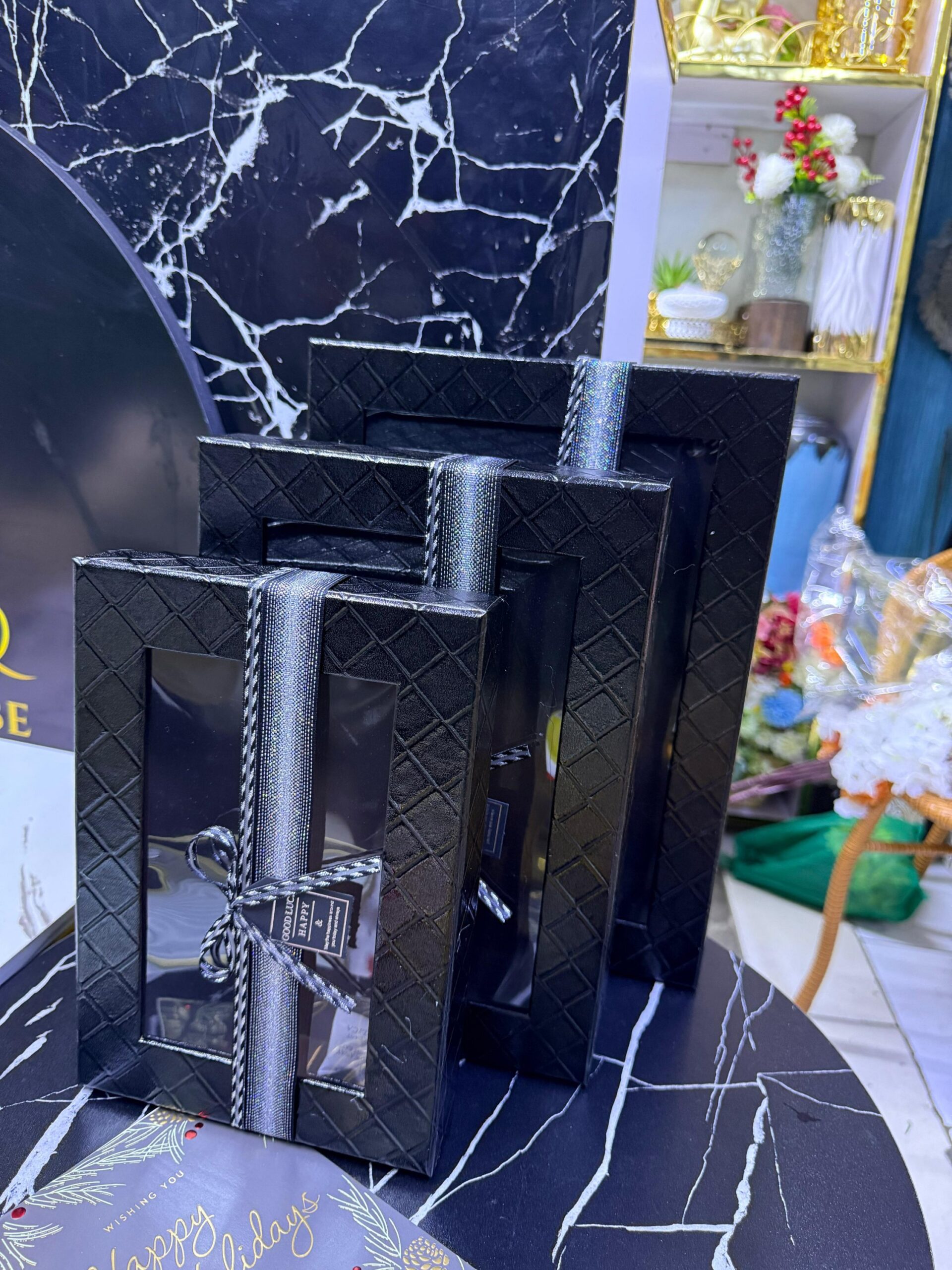 3 pc Gift Box Rectangular with Window Black Color Premium Quality Paper Perfect Packaging for Gifts Jewelry Christmas Birthdays Weddings Holidays Eco-Friendly Reusable Box