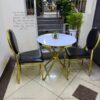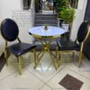 Dining Set Gold with Black Chairs (2) with a Round Marble Dining Table