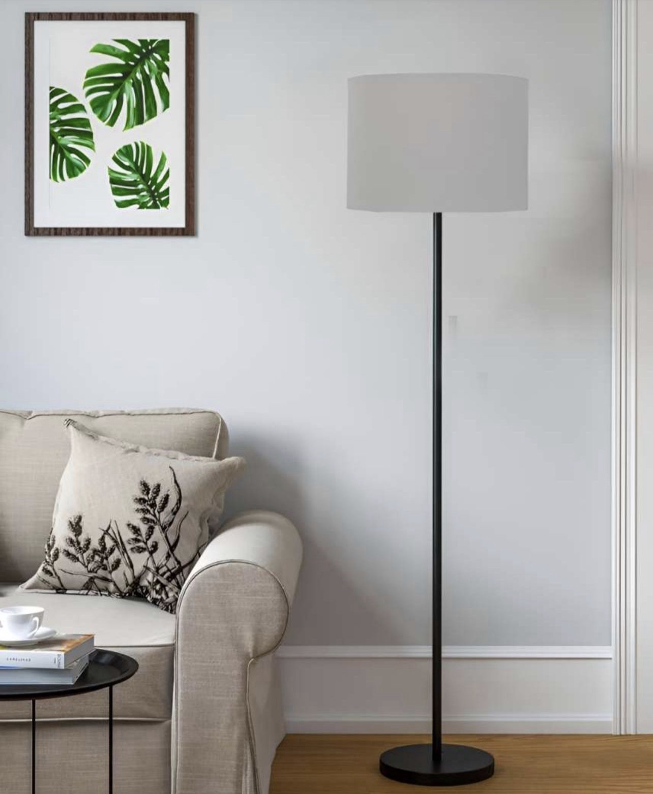Gray Straight Floor Lamp with Black Stand Standing Light for Living Room, Bedroom and Office