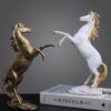 Horse Statue Resin Horse Figurine Animal Sculpture Decor Collective Ornaments Desktop Figures for Cabinet Restaurant Store Decor – White Gold
