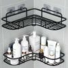 Kitchen / Bathroom Black Metallic corner triangular bathroom organizer, corner shower caddy,stick by adhesive stickers