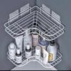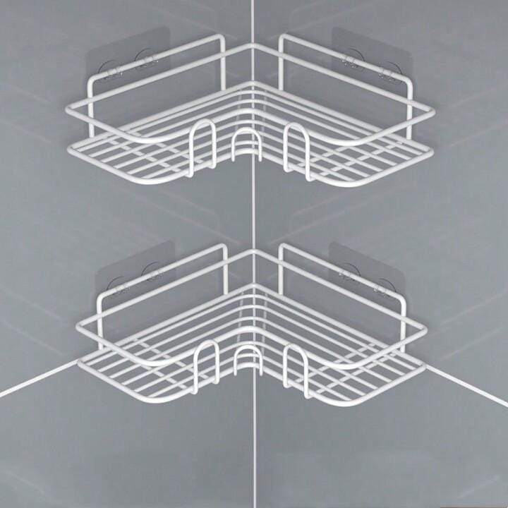 Kitchen / Bathroom White Metallic Corner Triangular Bathroom Organizer, Corner shower caddy,stick by adhesive stickers
