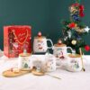 Luxurious Christmas themed Cup set + Gift Box Coffee Cup with Bamboo Lid & Gold Spoon Gift Box Set ~ Present