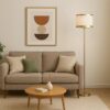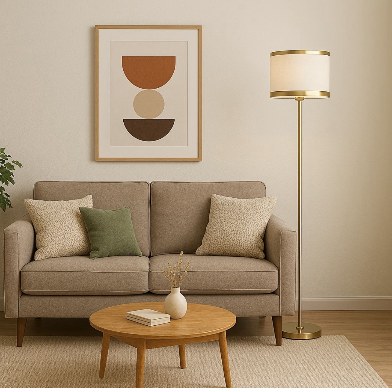 Straight White Modern Floor Lamp with Gold Stand Standing light for Living room Bedroom and Office