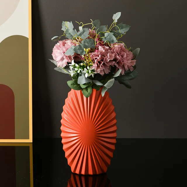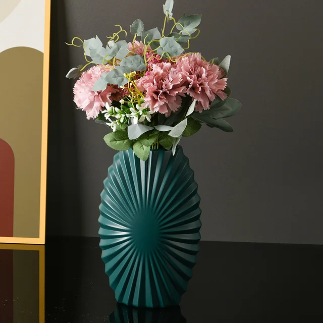French High-End Retro Art Decoration White Petal Shaped Ceramic Vase