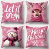 Pink Christmas Themed Home Decor Cushion Square Throw Pillow Covers