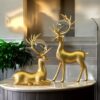 Set of 2 Golden Deer with Crystall Ball figurine Animal Statue Sculpture Living Room Decoration – Golden deer For Home Decor