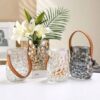 White Modern Circle Textured Ceramic Vase Set of 2, Nordic Circular Matte Hollow Donut Flower Vases Decorative Minimalist Art Boho Style for Home Living Room Office Kitchen Table Decor