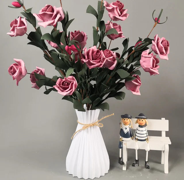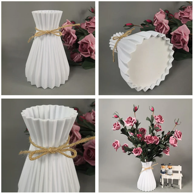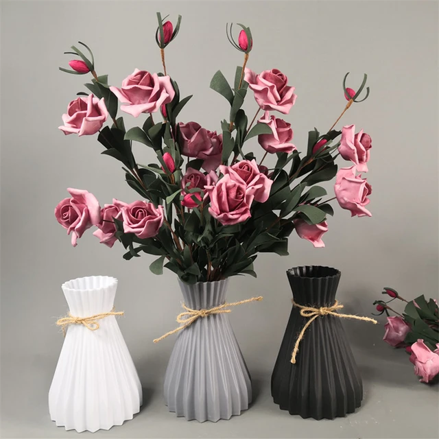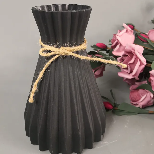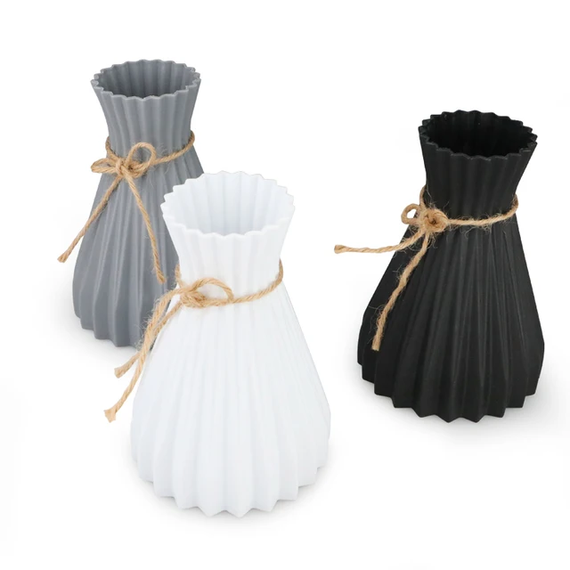 Unbreakable Plastic Flower vases with a bow tie available in Black, White and Grey