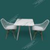 White Square table with 2 White Eames Mesh chairs